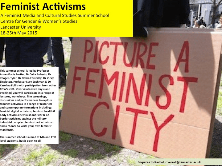 Feminist Activisms: Feminist Media and Cultural Studies Summer school/ MA course, Centre for Gender and Women’s Studies, Lancaster University 19th-22nd May 2015